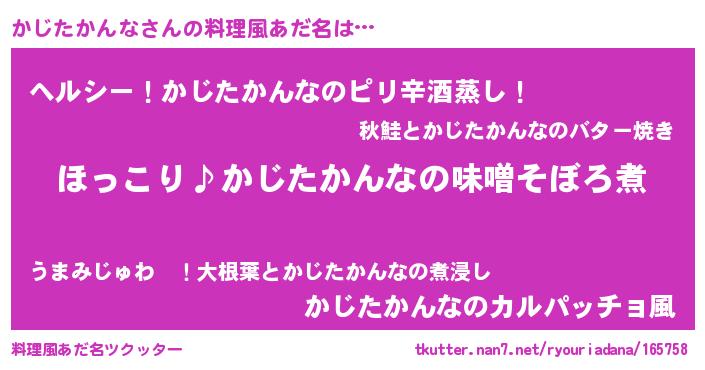 | ヘコむあだ名 | 『かじにゅー』『かじたかんな(遠い目)』 |