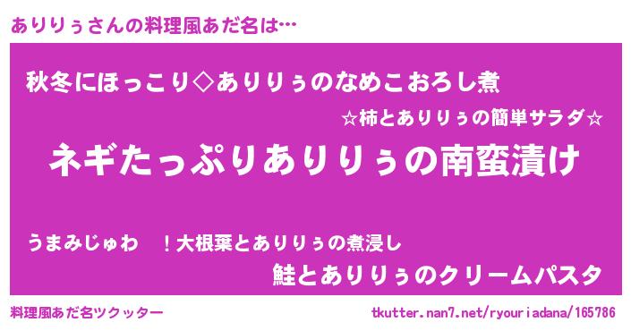 | 胡散臭い通販商品みたいなあだ名 | 『億万長者になれるブレスレット…その名も「ありりぅ」』 |