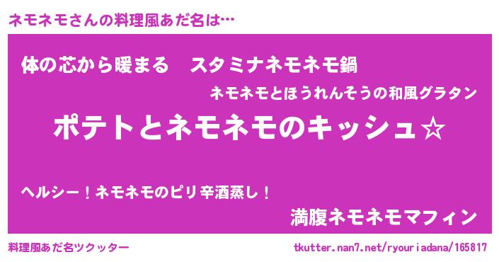 | 意味不明あだ名 | 『とにかく怪しいネモネモ』 |