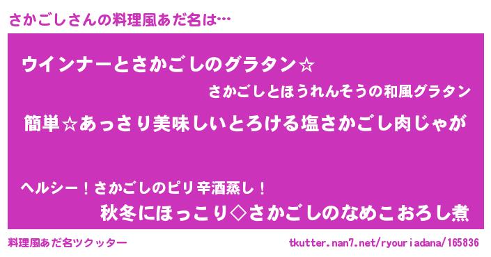 | ヘコむあだ名 | 『さかごし(笑)』『なまこ酢』 |
