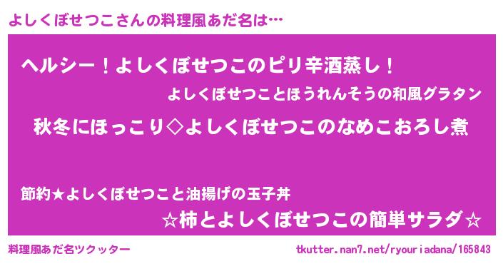 | 胡散臭い通販商品みたいなあだ名 | 『芸能人もオススメする高麗人参…その名も「よしくぼせつこ」』 |