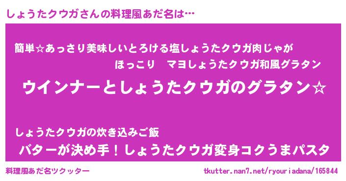 | ヘコむあだ名 | 『なまこ酢』『しょうたクウガ(笑)』 |