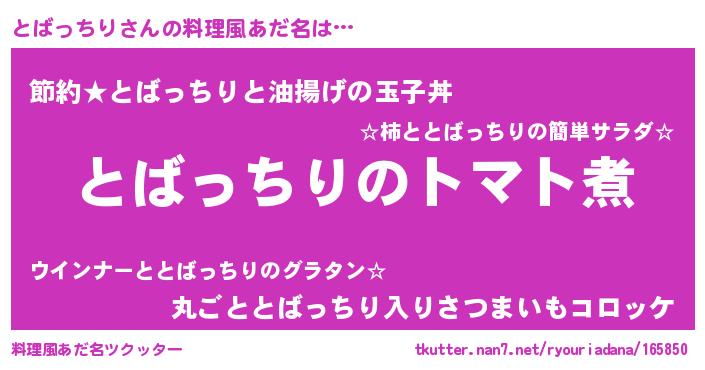 | ヘコむあだ名 | 『とばにー』『牛乳』『とばお』 |