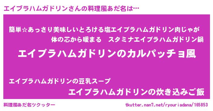 | 欧米人風あだ名 | 『ダレノガレエイブラハムガドリン』 |