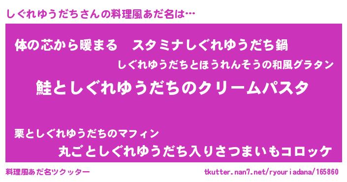 | ポケモン風あだ名 | 『シックウザ』『シグレダネ』 |