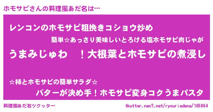 | 女子向けラノベタイトル風あだ名 | 『ホモサピの婚約者』『ホモサピ恋絵巻』 |