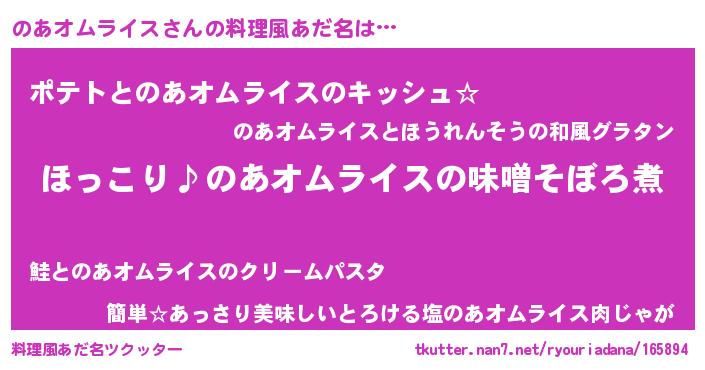 | 胡散臭い通販商品みたいなあだ名 | 『必ず成功するブレスレット…その名も「のあオムライス」』 |