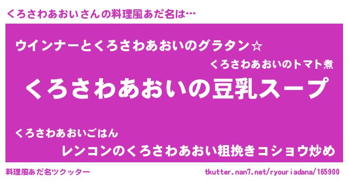 | ポケモン風あだ名 | 『ヒクロサワアオイ』『クロサダネ』 |
