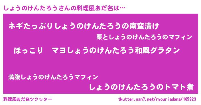 | 男性向けラノベタイトル風あだ名 | 『この素晴らしい世界にしょうのけんたろうを!』 |