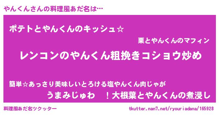 | ヘコむあだ名 | 『やん太郎』『豆乳』『やんもー』 |