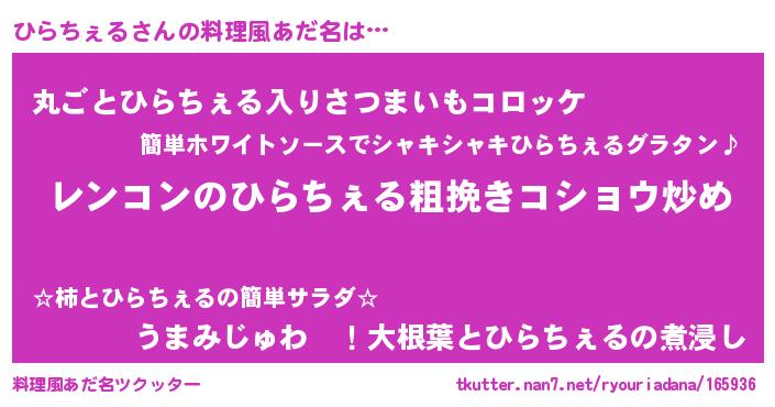 | 胡散臭い通販商品みたいなあだ名 | 『ガンによく効く高麗人参…その名も「ひらちぇる」』 |