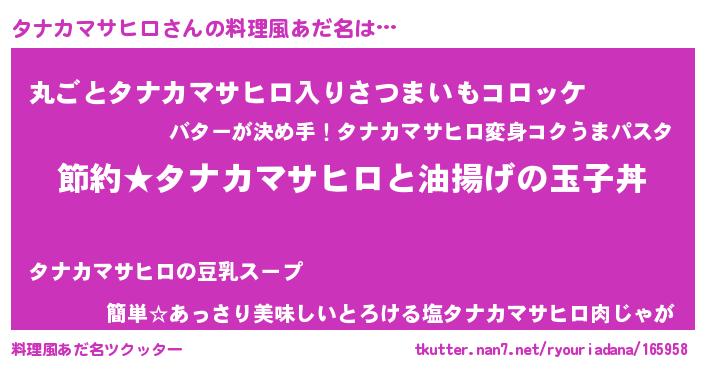 | ヘコむあだ名 | 『タナもー』『タナカマサヒロ(震え声)』 |