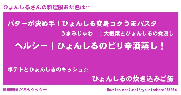 | 胡散臭い通販商品みたいなあだ名 | 『テレビで話題の高麗人参…その名も「ひょんしる」』 |