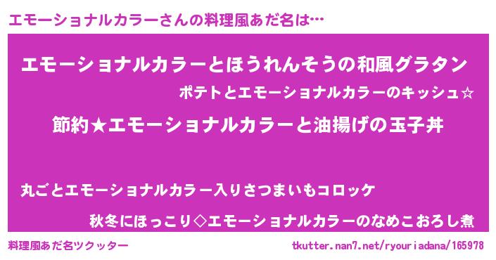 | 胡散臭い通販商品みたいなあだ名 | 『モテモテ間違いなし水晶球…その名も「エモーショナルカラー」』 |