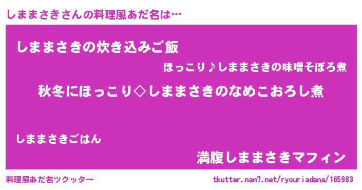 | 意味不明あだ名 | 『永久保存しままさき』『自称しままさき』 |