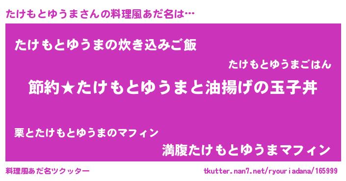 | 恥ずかしいあだ名 | 『プリティーたけもとゆうま』『たけちん』 |