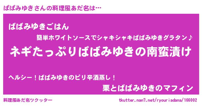 | 意味不明あだ名 | 『ペロリンばばみゆき』『自称ばばみゆき』 |
