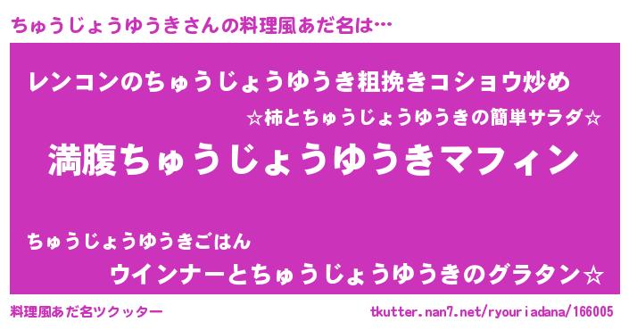 | 男性向けラノベタイトル風あだ名 | 『ちゅうじょうゆうきという概念が存在しない退屈な世界 』 |