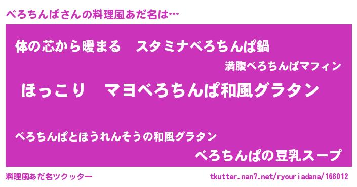 | 意味不明あだ名 | 『住所不定無職べろちんぱ(50歳)』 |