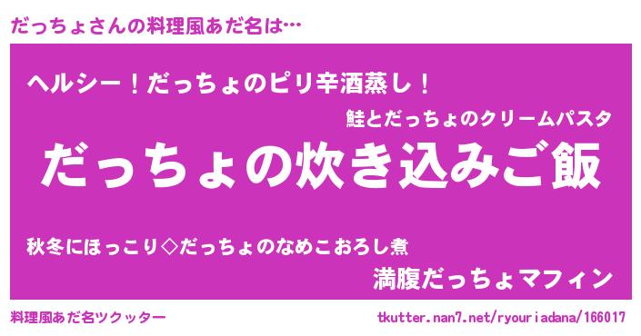 | ヘコむあだ名 | 『だっちょ(爆)』『なまこ酢』 |