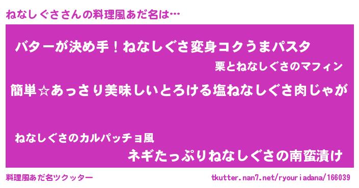 | 意味不明あだ名 | 『永久保存ねなしぐさ』『自称ねなしぐさ』 |