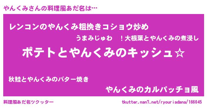 | 男性向けラノベタイトル風あだ名 | 『やんくみの嫁は女の子じゃないと思った?』 |
