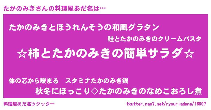 | ヒーロー風カッコイイあだ名 | 『正義の使者たかのみき』『仮面タカダー』 |
