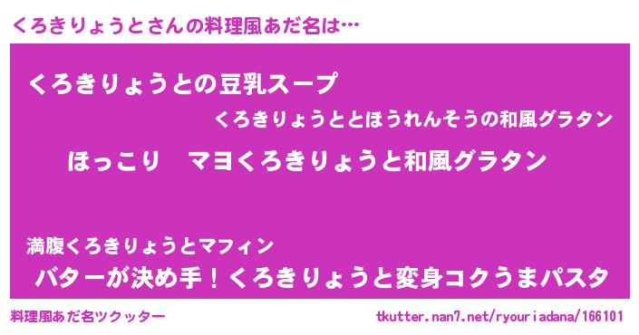 | 男性向けラノベタイトル風あだ名 | 『この素晴らしい世界にくろきりょうとを!』 |