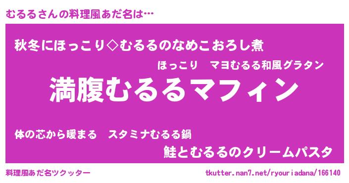 | 胡散臭い通販商品みたいなあだ名 | 『絶対に幸福をもたらす健康食品…その名も「むるる」』 |