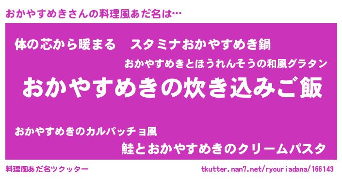 | 意味不明あだ名 | 『おかやすめきフォーエバー』 |