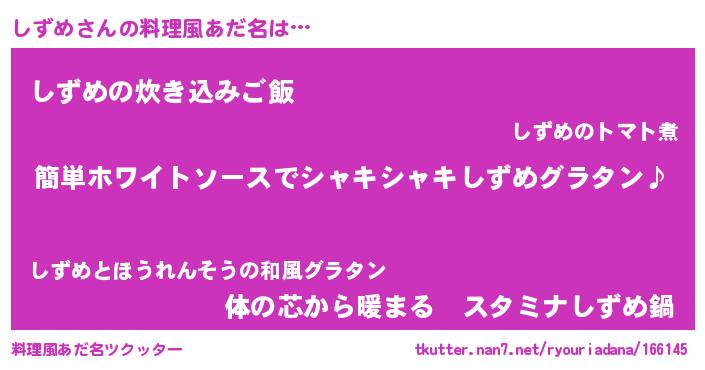 | ヘコむあだ名 | 『しずぷりん』『酢こんぶ』 |