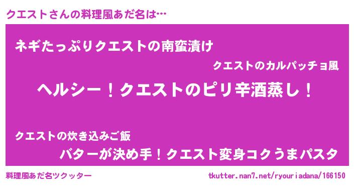 ヘコむあだ名 | 『クエにゅー』『クエスト(笑)』 |