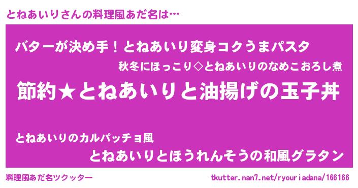 | ヒーロー風カッコイイあだ名 | 『スーパートネアイリ』『仮面トネダー』 |