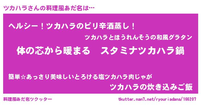 | 女子向けラノベタイトル風あだ名 | 『ツカハラの雑貨屋さん』『闇のツカハラ』 |