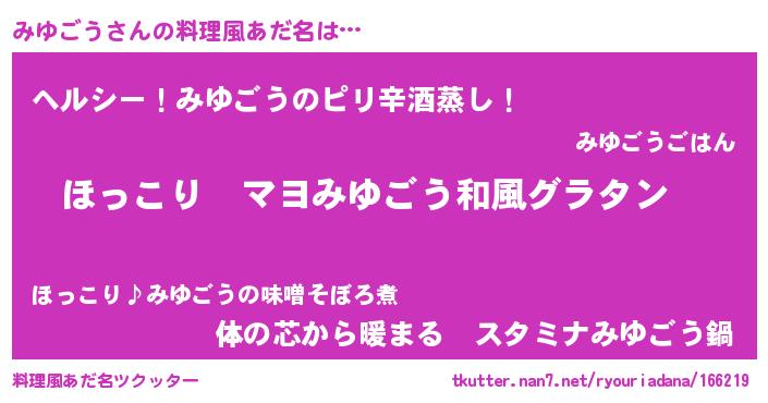 | ヒーロー風カッコイイあだ名 | 『仮面ミユダー』『最強戦士ミユゴウ』 |