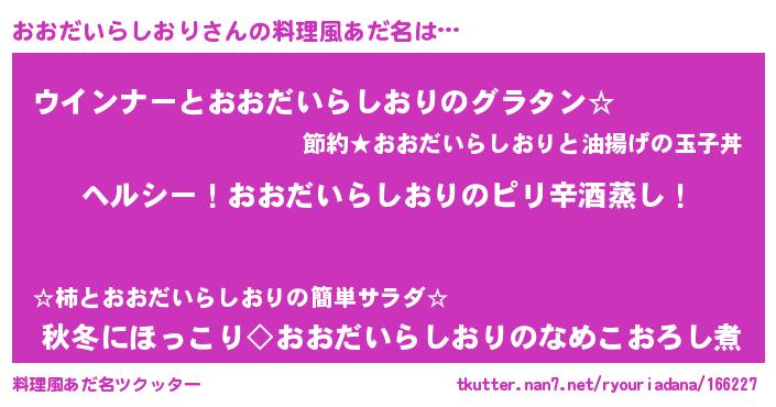 | 意味不明あだ名 | 『自称おおだいらしおり』 |