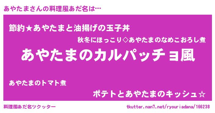 | 意味不明あだ名 | 『住所不定無職あやたま(39歳)』 |