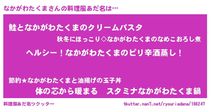 | 胡散臭い通販商品みたいなあだ名 | 『テレビで話題の高麗人参…その名も「なかがわたくま」』 |