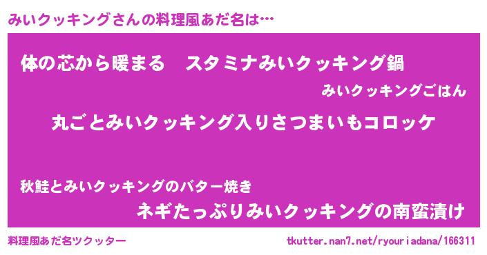 | 欧米人風あだ名 | 『ダレノガレみいクッキング』 |