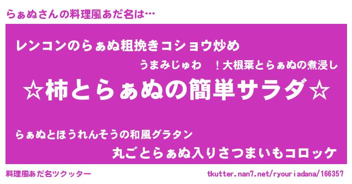 | ヒーロー風カッコイイあだ名 | 『サイバー戦士ラァヌ』『仮面ラァダー』 |