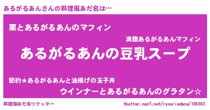 | 意味不明あだ名 | 『とにかく怪しいあるがるあん』 |