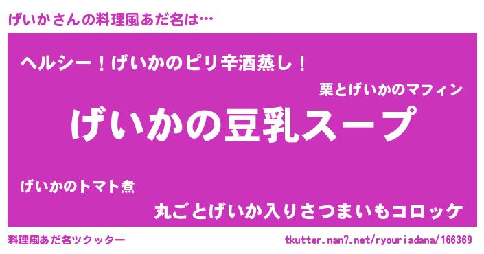 | 意味不明あだ名 | 『とにかく怪しいげいか』『自称げいか』 |