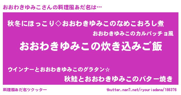 | 意味不明あだ名 | 『永久保存おおわきゆみこ』 |