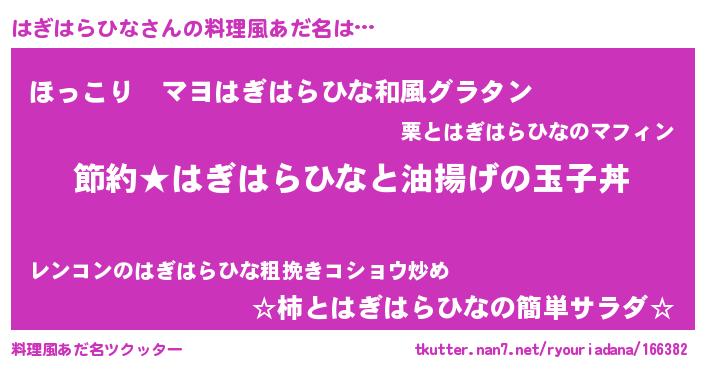 | ヘコむあだ名 | 『はぎふぇ~』『はぎ太郎』『つくし』 |