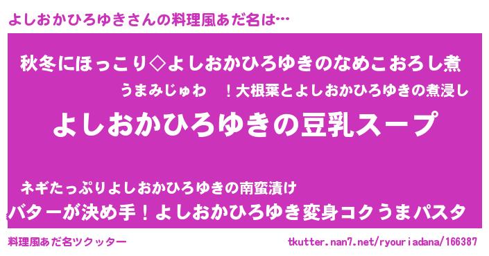 | ポケモン風あだ名 | 『ヒヨシオカヒロユキ』『ヨシゴンZ』 |