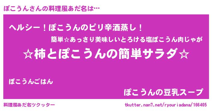 | 男性向けラノベタイトル風あだ名 | 『緋弾のポコウン』『ポコウンスレイヤー』 |