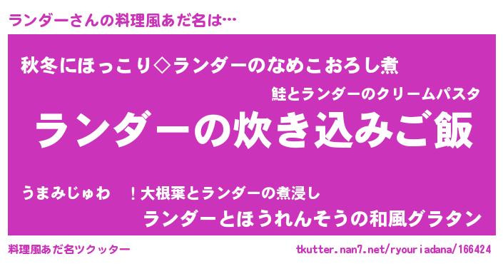 | 男性向けラノベタイトル風あだ名 | 『うちのランダーが世界を掌握している!』 |