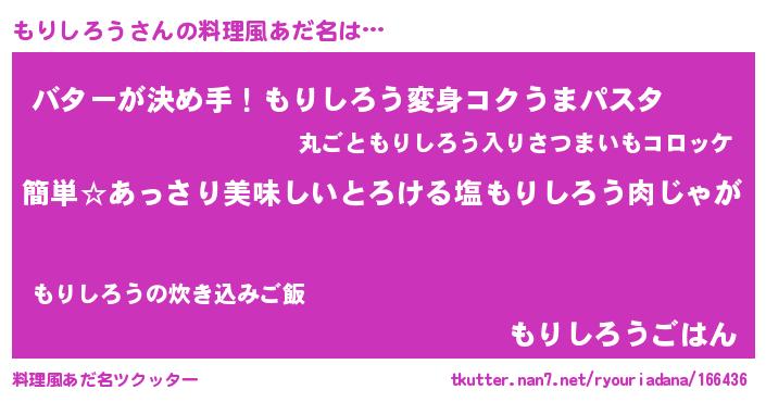 | ヘコむあだ名 | 『もりしろう(笑)』『牛乳』『もりを』 |