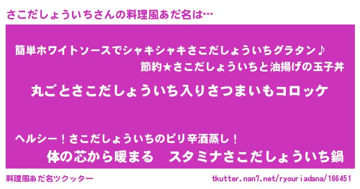 | 男性向けラノベタイトル風あだ名 | 『この素晴らしい世界にさこだしょういちを!』 |
