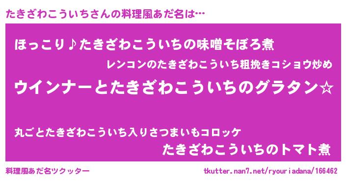 | ヘコむあだ名 | 『なまこ酢』『たきにー』『たきっ子』 |